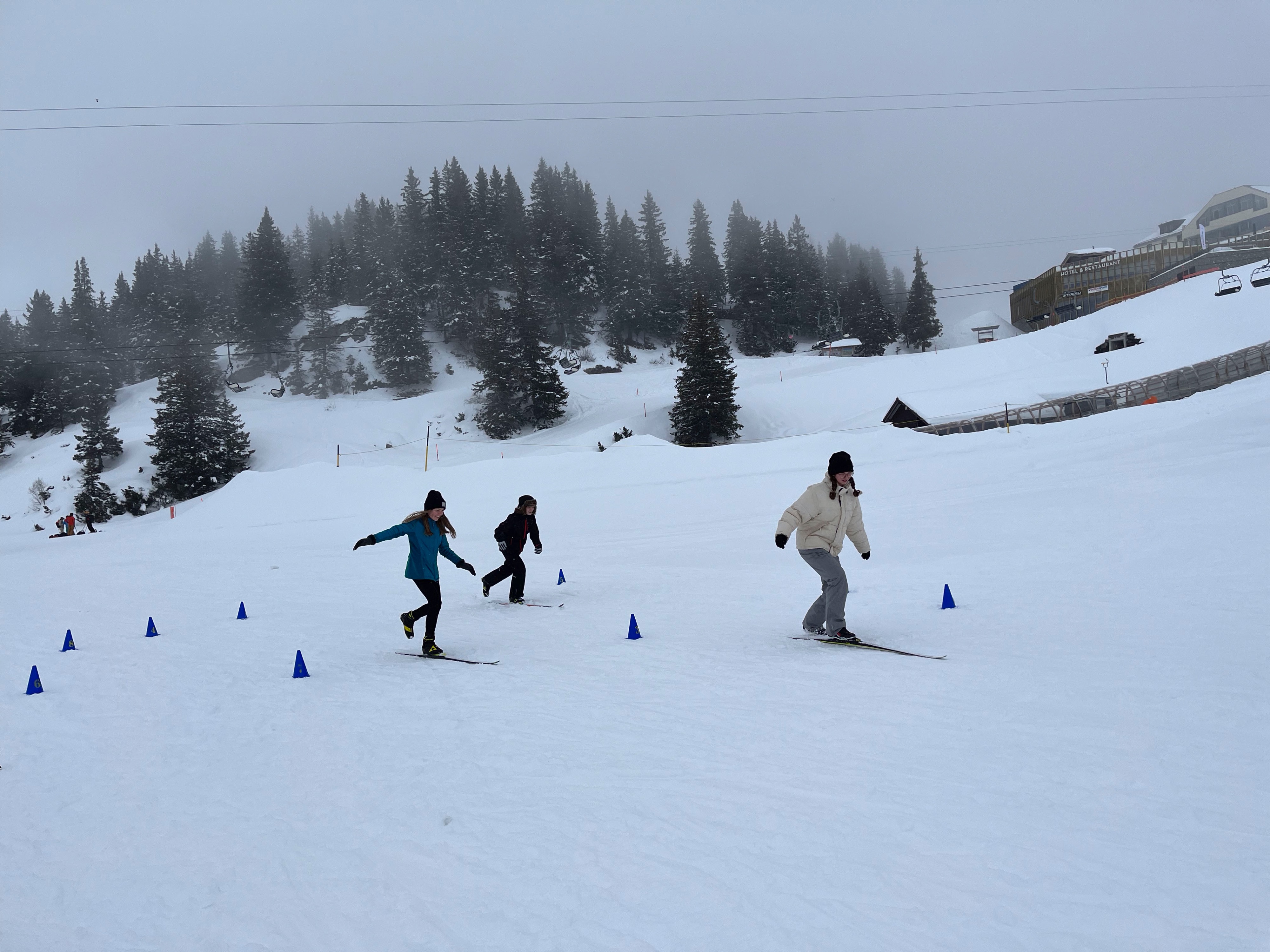 Skifahrer/-innen und Snowboarder/-innen genossen die ausgezeichneten Schneeverhältnisse und wagten sich trotz der mehrheitlich schlechten Sicht auf die Pisten. Die verschneite Landschaft bot trotz des Nebels eine malerische Kulisse für ihre Abenteuer. Für diejenigen, die sich lieber abseits der Pisten bewegten, bot eine Schneeschuhwanderung in tieferer Lage eine willkommene Alternative mit besserer Sicht. Auf Trübsee fand der Schnupperkurs Skilanglauf statt, bei dem einige Schüler/-innen die Skating-Technik erlernen konnten.