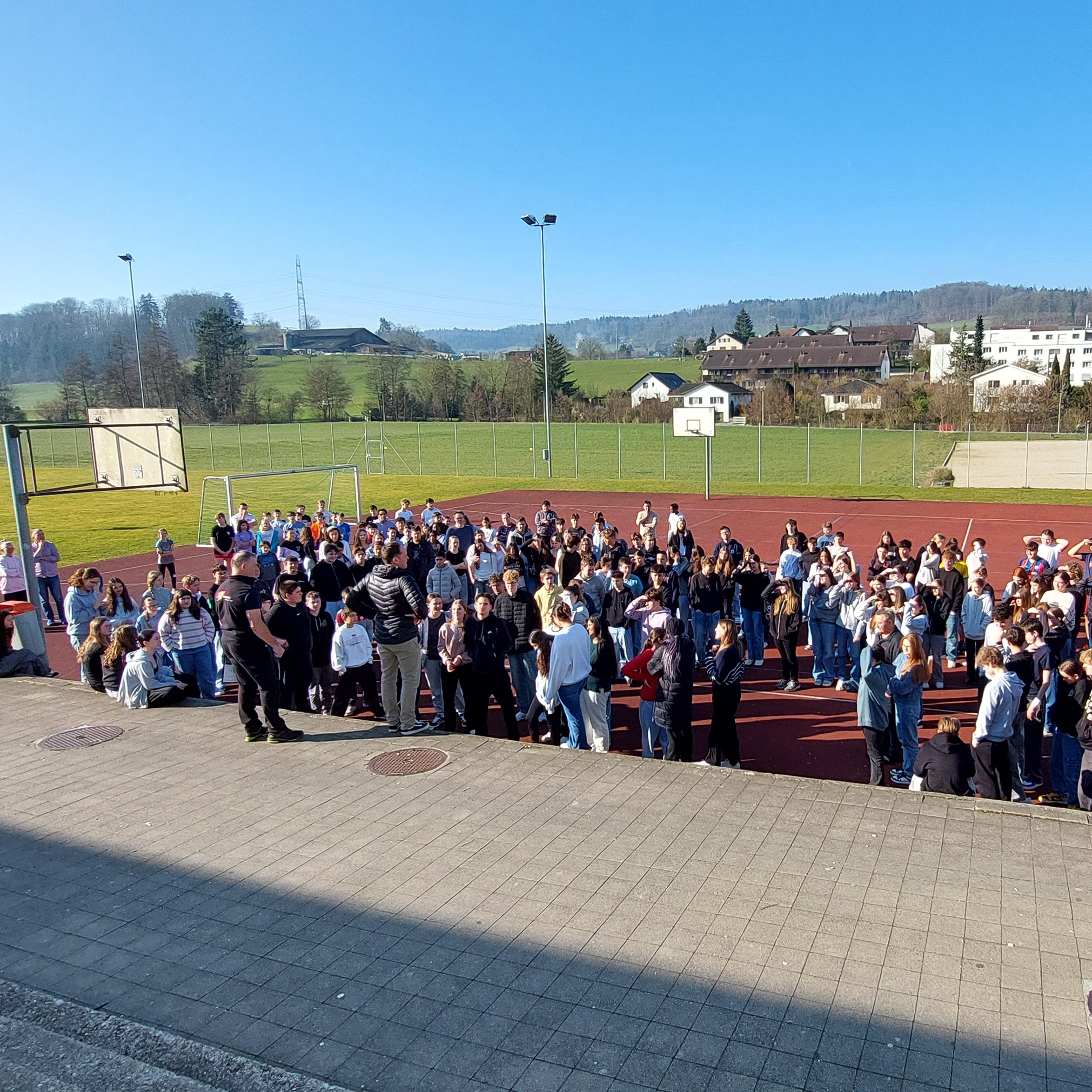 Am Mittwoch versammelten sich die Schülerinnen und Schüler vom Standort Lengnau bei schönstem Wetter in Endingen.
