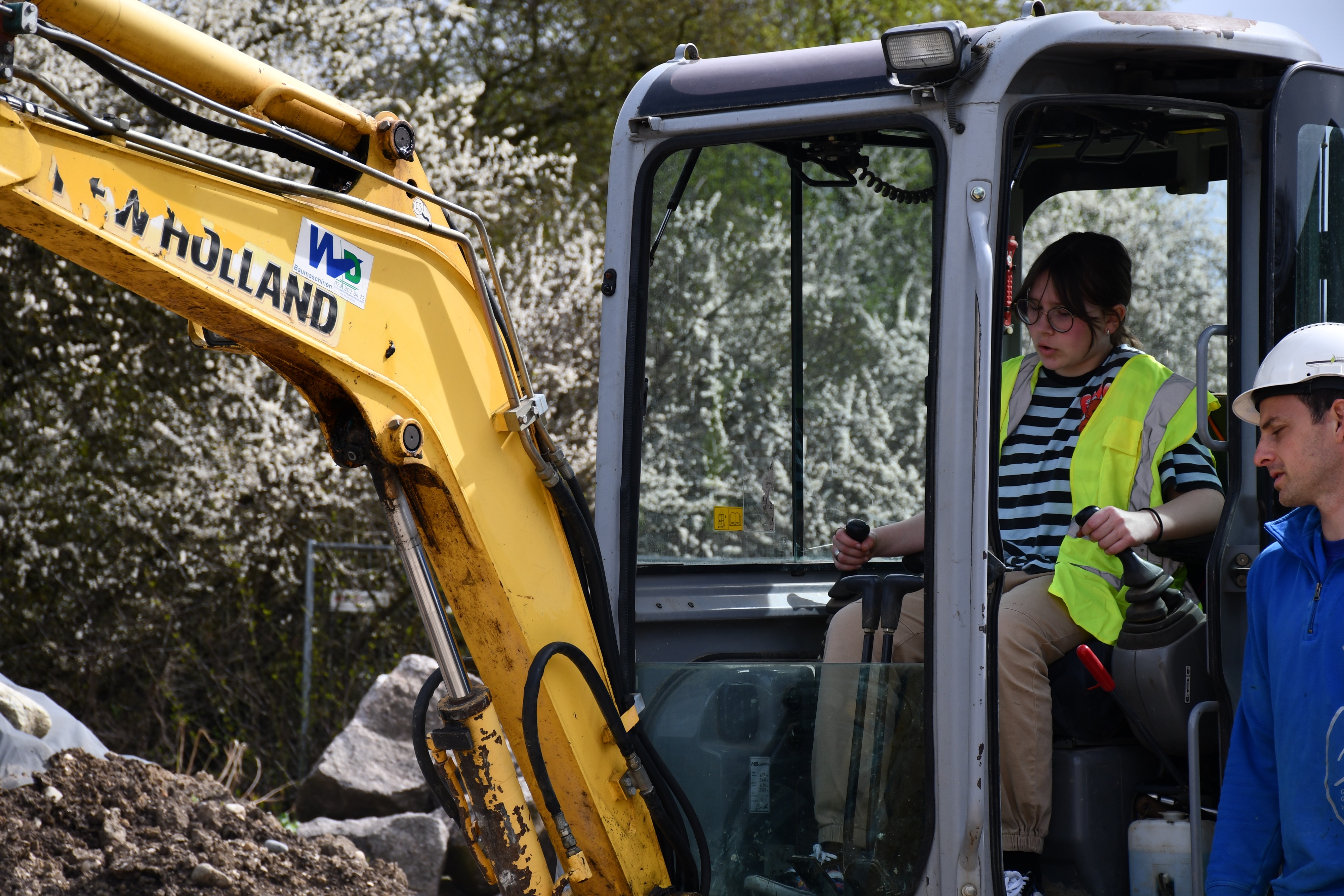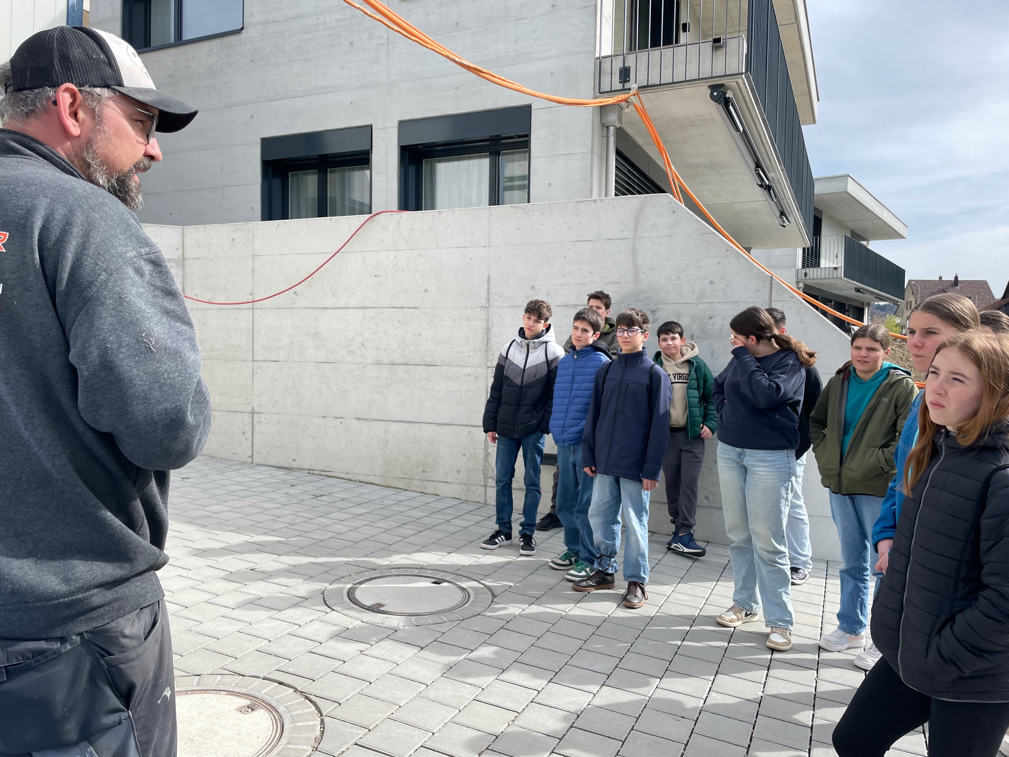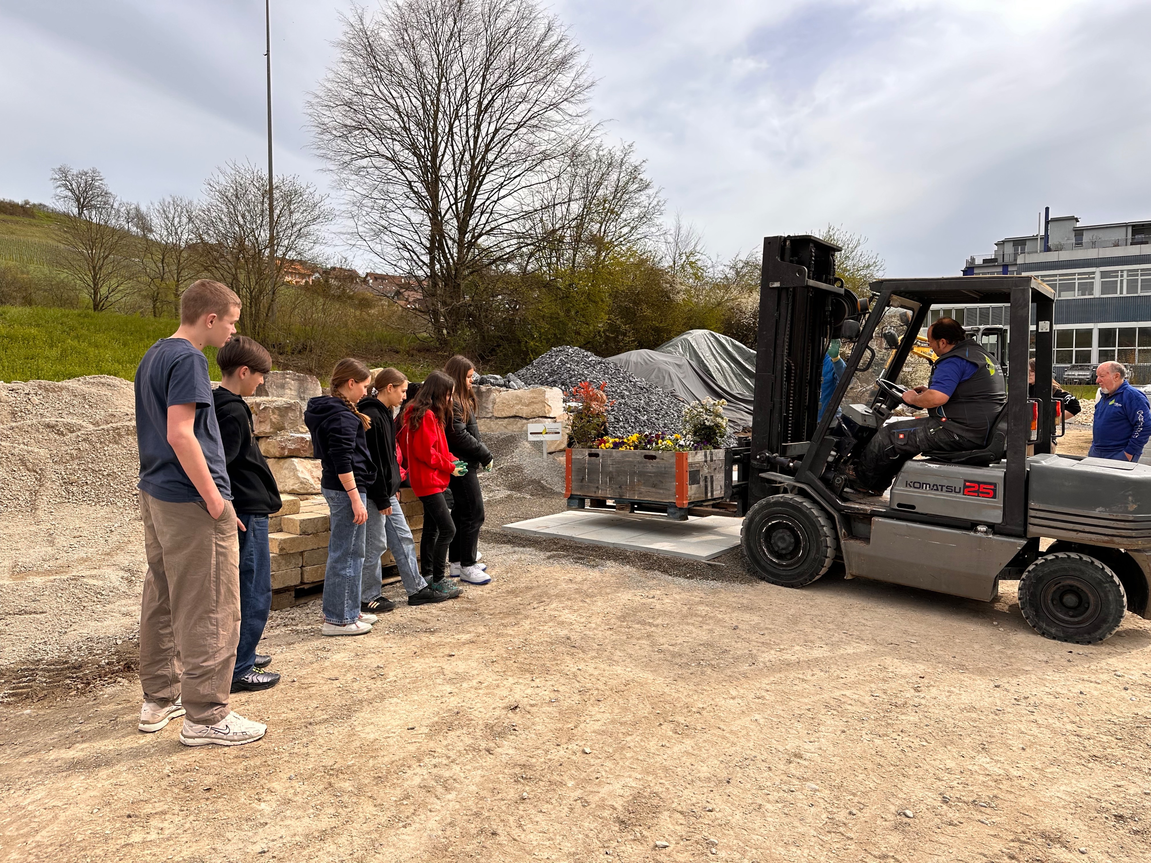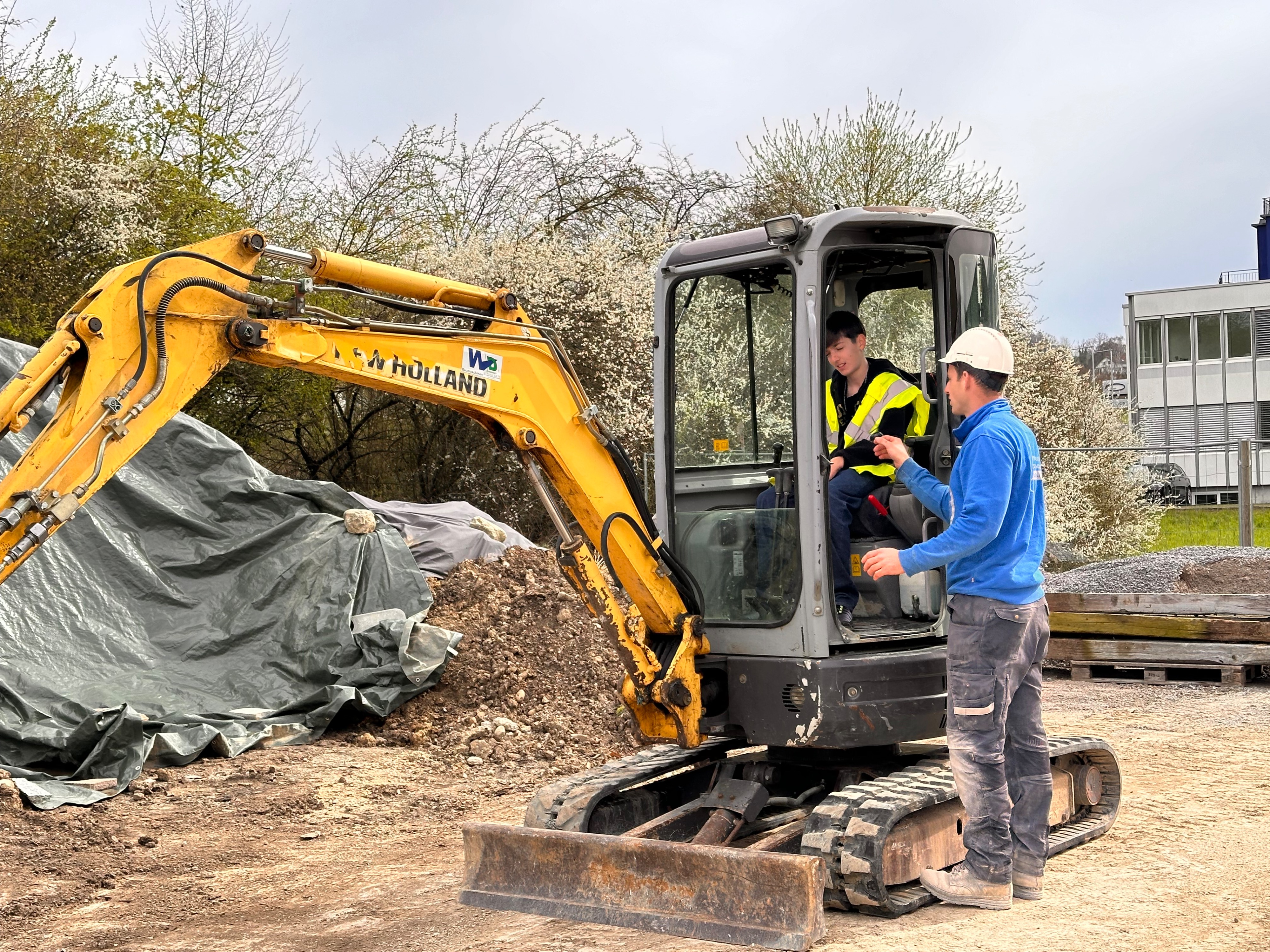 Nach einer Stunde hiess es mit dem Fahrrad den Standort zu wechseln. Auch im neuen Berufsumfeld durften die Teenager allerhand Tätigkeiten wie Baggerfahren, Bausätze zusammenbasteln und Platten verlegen nachgehen oder interessanten Informationen zuhören.