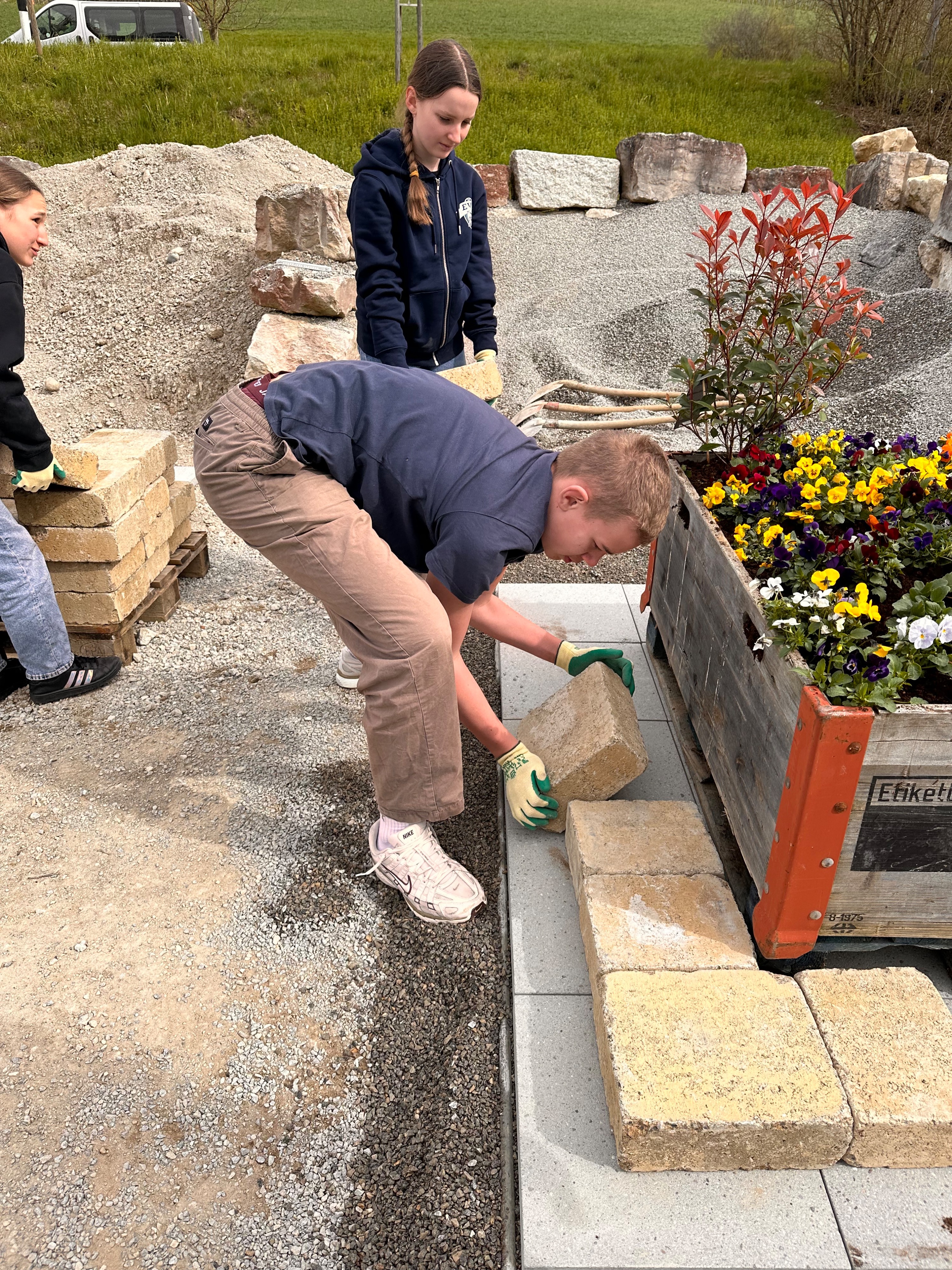 Um neun Uhr ging es am ersten Posten los. Die Jugendlichen der Kreisschule Surbtal wurden in Berufe eingeführt, durften Schweissen, Reifen wechseln, Hochbeete bepflanzen, den Blutdruck messen, Ziegelsteine mauern und sogar Blumen essen.