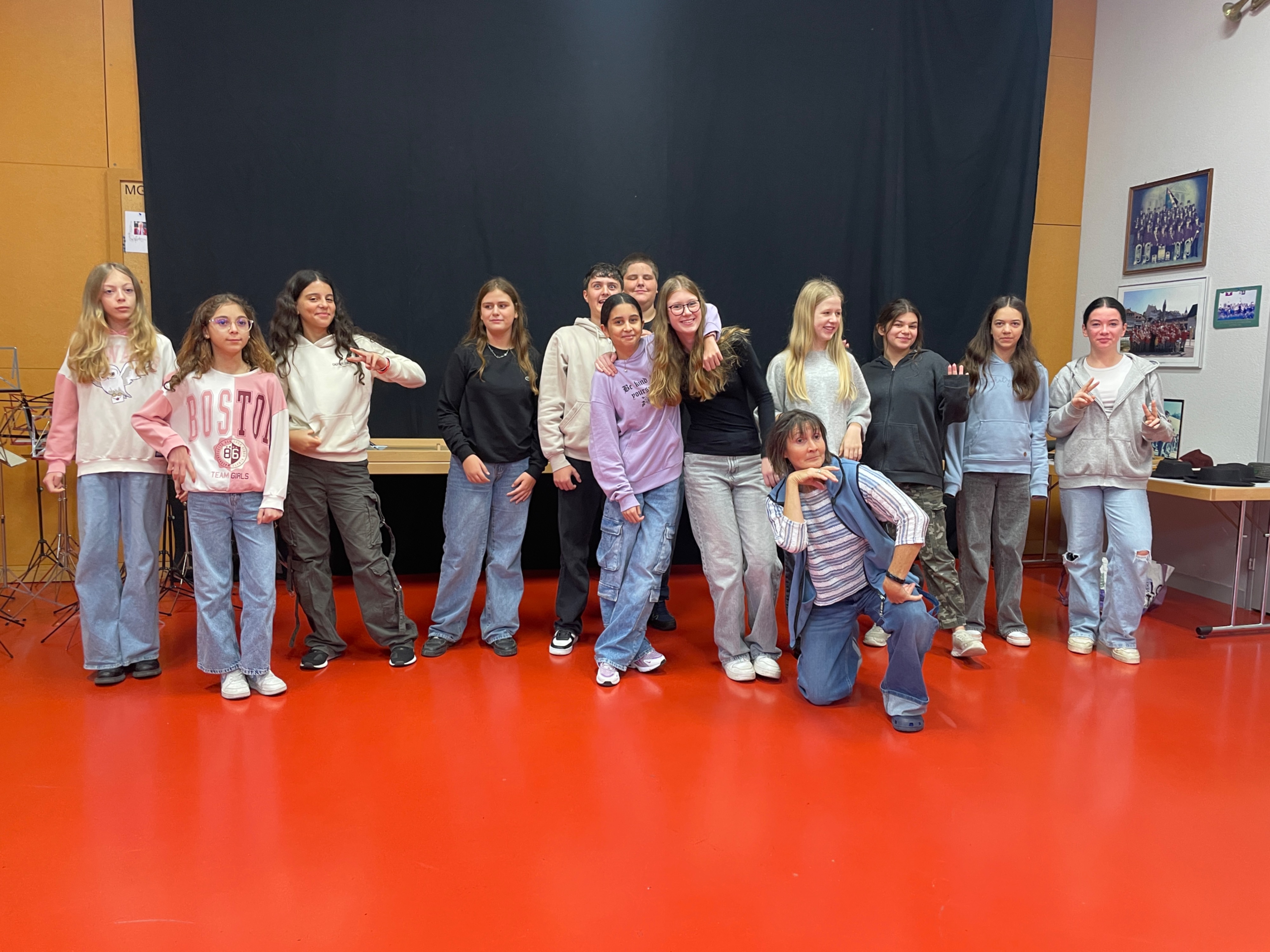 Im Bereich der darstellenden Künste wurde das Atelier Theater unterwegs angeboten. Ziel war es, dass die Schüler/-innen in verschiedene Rollen schlüpfen und kleine, selbstgestaltete Theaterszenen präsentieren, ohne sich dabei unwohl zu fühlen. Die Woche fand ihren Höhepunkt in einer zehnminütigen, von Gruppen inszenierten Abschlussaufführung.