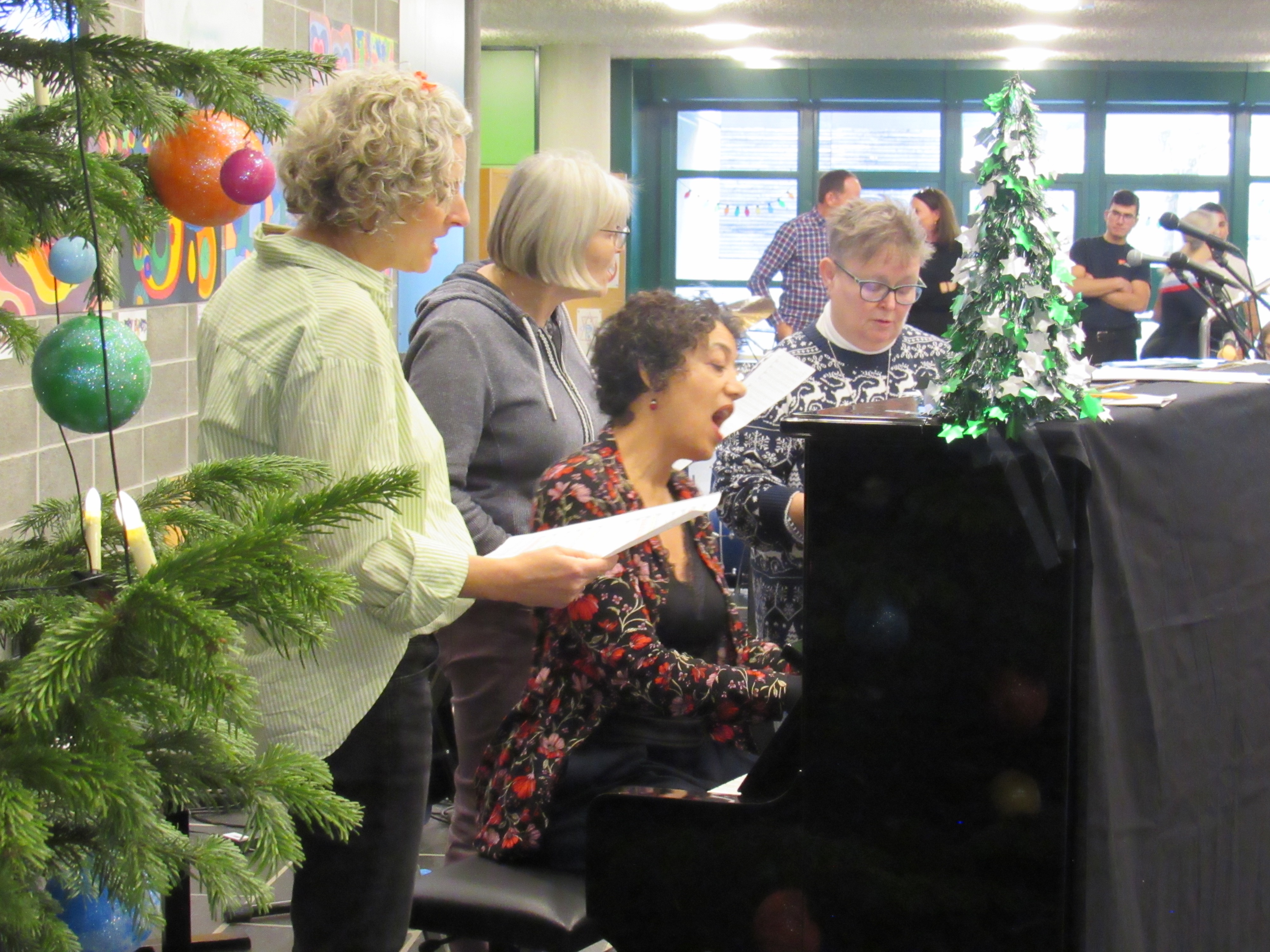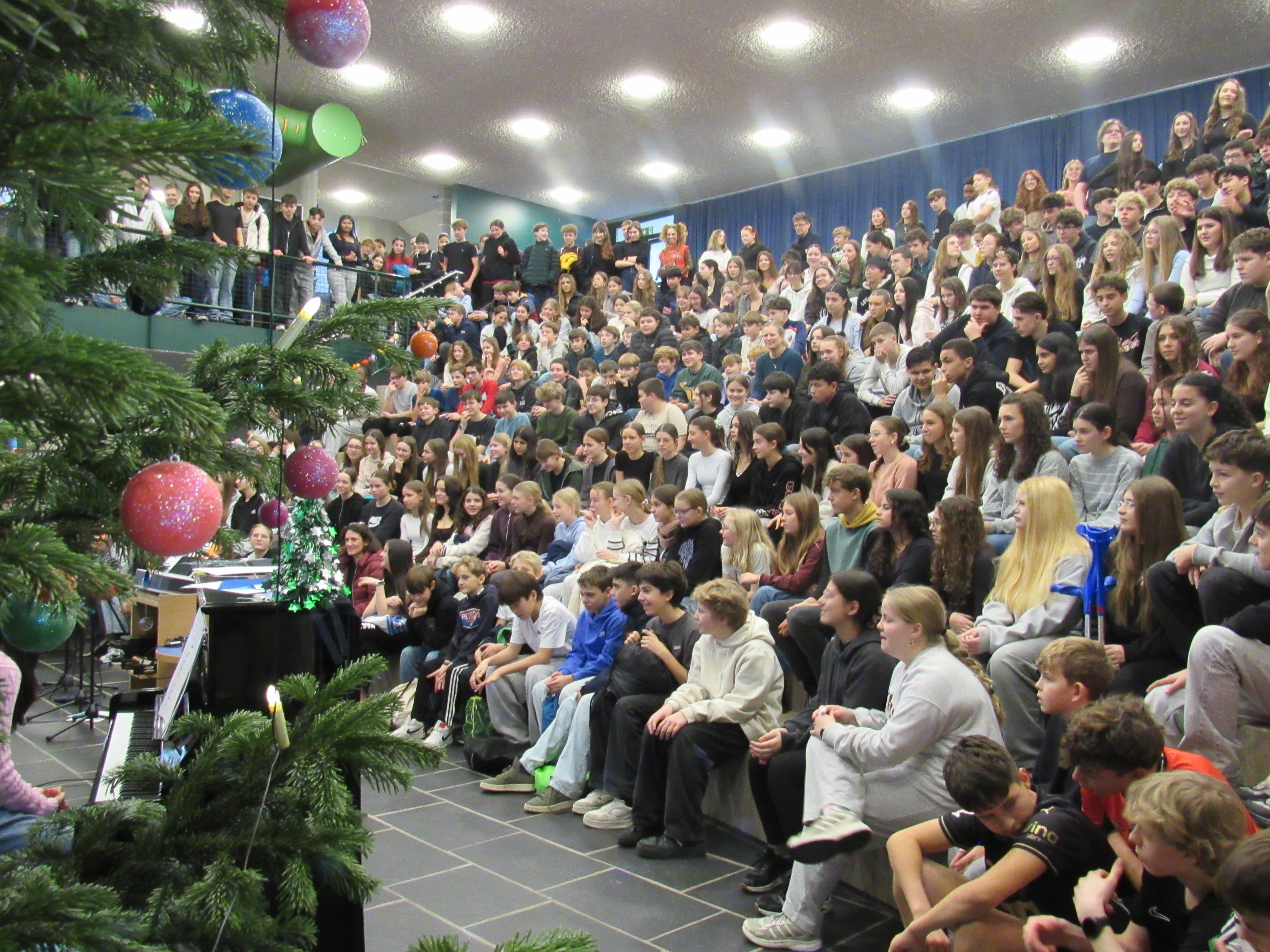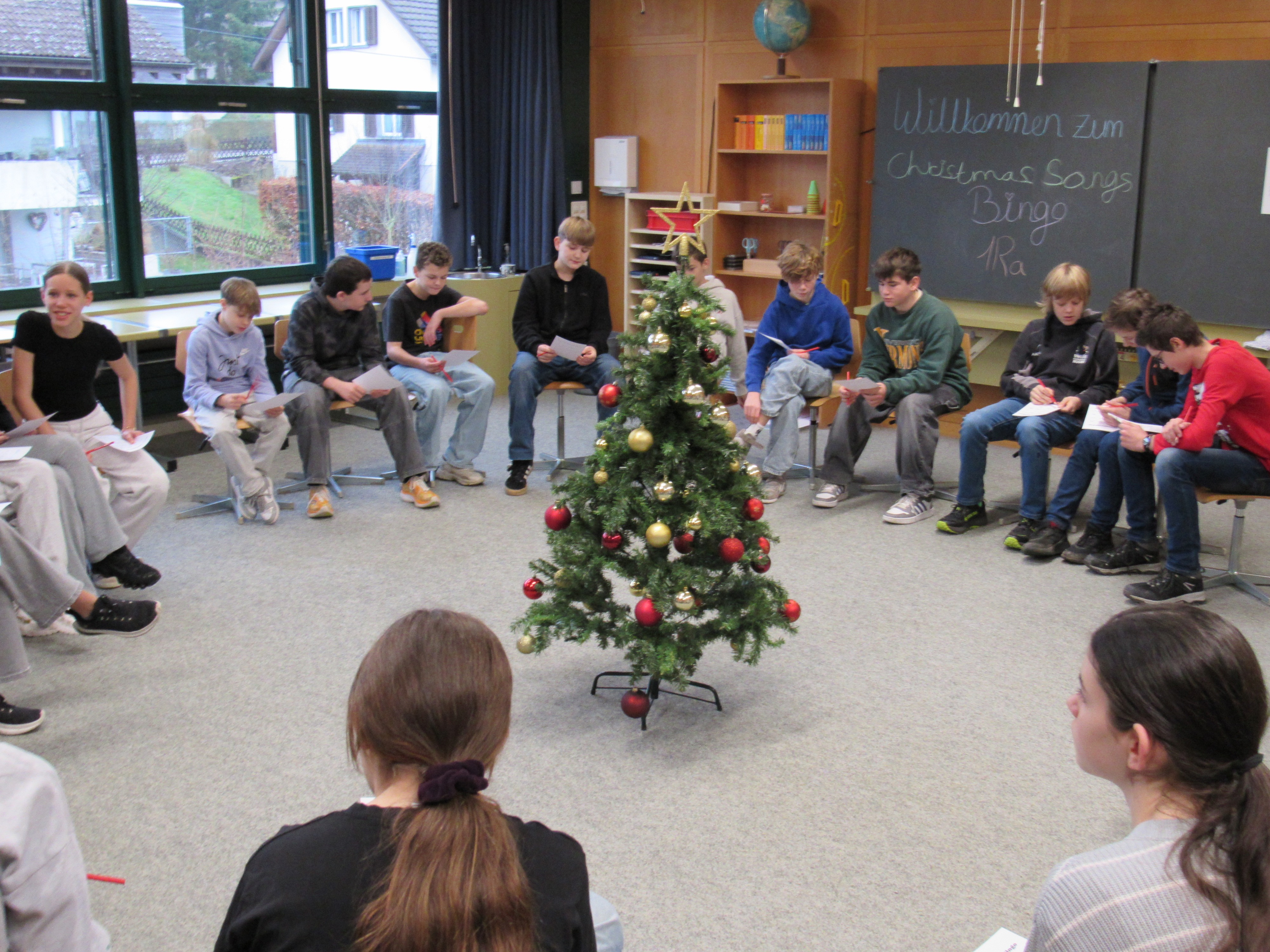 Zum wiederholten Male etabliert sich hier eine jährliche Tradition, bei der sich die Oberstufenschülerinnen und -Schüler der beiden Standorte zum gemeinsamen Anlass versammeln. In diesem Jahr boten die Lengnauer Klassen unter Anleitung des Schülerrats in ihren Klassenzimmern ein Spiel- und Unterhaltungsangebot. Die Endinger Bez-Schülerinnen und Schüler kamen nach der Anreise in den Genuss sich bei ihren Gastgebern in Quizzen, Kartenspielen, Gruppenspielen und beim Sport zu versuchen. In den verschiedensten Schulräumen war das Wissen und Können in Ratespielen zu Musik, allgemeiner Bildung und Wortwissen gefragt, beim Bingo zu Weihnachtsliedern versuchten alle ihr Glück, an den Schultischen wurde UNO, Ligretto und viele weitere Kartenspiele gespielt. Im abgedunkelten Schulzimmer gab es mehrere Runden der Werwölfe. Und in der Turnhalle kam es zur Herausforderung im Volleyball und Burgenball. Für ruhige Momente stand die Bibliothek weihnachtlich geschmückt zur Verfügung. Die neuerlichen Begegnungen beim gemeinsamen Erleben stand im Mittelpunkt und führte zum fröhlichen Austausch und zu ausgelassener Stimmung. Eine Klasse hatte in der Kochschule diverse Backwaren und Süssigkeiten vorbereitet, bei der Versammlung in der Aula feierte die ganze Schule den Jahresabschluss bei stimmungsstarken und unterhaltsamen musikalischen Darbietungen der Schulband, einzelner Schülerinnen und Schüler, einem Lehrerinnen-Quartett und einem leidenschaftlichen Vortrag der Musiklehrerin Rosey Streicher, die alle Gruppen anleitete. Nach einer Verpflegung am Mittag und den Abschlussworten der Schulleitung Andrea Waltzer und Jan Winkelhagen verabschiedeten sich die Jugendlichen in die wohlverdienten Weihnachtsferien.